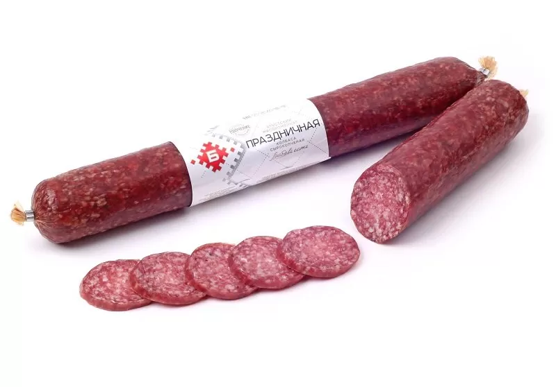 Сырокопченая колбаса «Праздничная» обладает мягким приятным вкусом. Это изысканный деликатес, который станет настоящим украшением любого стола! Колбаса будет пользоваться большим успехом среди гостей, в каком бы виде вы ее ни подали — в качестве самостоятельной закуски, и для бутербродов и канапе.